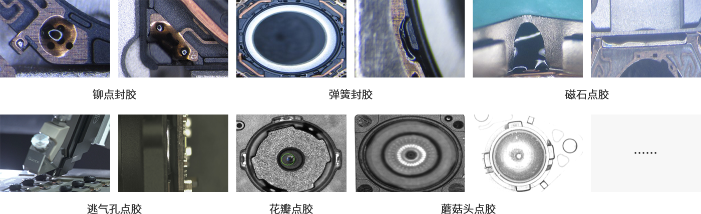 智能终端、AR/VR智能穿戴、新能源汽车智能驾驶、智能家居等行业的蓬勃发展促使CCM/VCM市场需求量剧增,CCM模组生产制程中点胶工艺广泛应用,如脖子胶,逃气孔点胶,蘑菇头点胶,花瓣点胶,FPC补强;VCM马达Pin脚焊点的点胶保护;双摄三摄支架缝隙点胶以及模组防尘防水点胶等应用