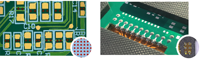 | · 点红胶工艺主要作用是增加元器件的粘接性,防止元器件在过炉过程中出现位移、脱落,以及增加大元器件的牢固性,主要应用于SMT贴片、波峰焊工艺。 · 点锡膏是焊接的前道工艺,主要应用于空间受限无法印刷锡膏的SMT元件与PCB焊接、FPC与FPC焊接、FPC上通孔插件的焊接以及FPC与过孔PCB等焊接工艺前的锡膏喷涂。 · 胶量控制、出胶一致性、高效率运行下品质稳定性; · 设备稳定性,满足高速度飞行作业需求。 |