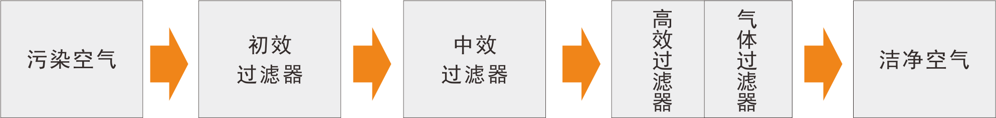 然后经过中效过滤器、高.效过滤器,它以99.97%的效率把大于0.3微米的微粒从气流中滤除,这种过滤器是一种纤维化玻璃过滤系统。