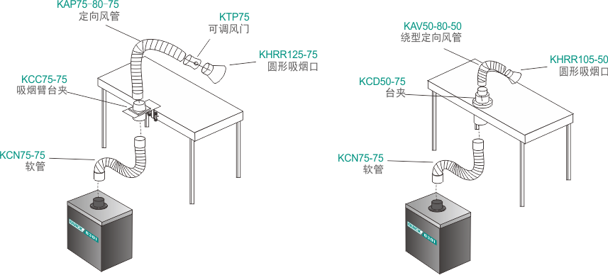 管道式排风,均为固定式安装,无法移动,不适应产线的重新布局调整。